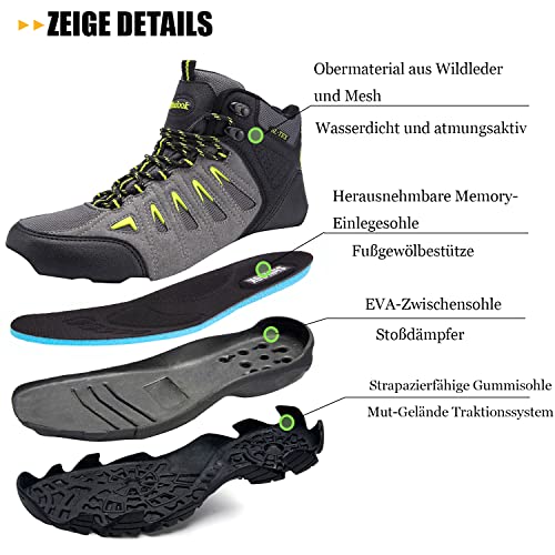 Specification: SHULOOK Wandelschoenen voor heren, waterdichte trekkingschoenen, antislip, hoge taille, wandellaarzen, outdoor, bergschoenen, ultralichte sneakers, camping, trakking, wandelen, hiking boots